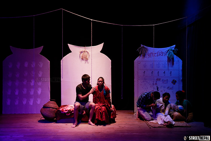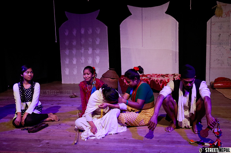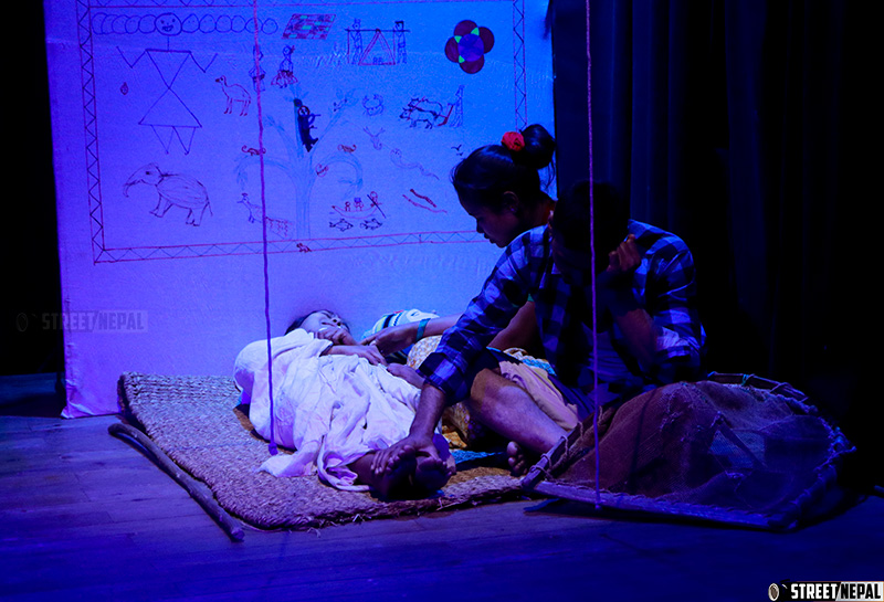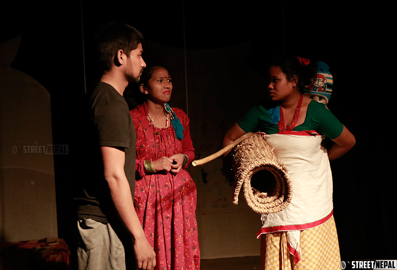 Tharu language play KAROT is currently staging at Sarbanam Theater. Play KAROT is written and directed by Pranab Aakash. This play has tried to show how relations changes when greed enter the poor family. Indra Bahadur Chaudhari, Bhumika Chaudhari, Sunita Chaudhari, Niraj (Babu) Chaudhari, Shanti Chaudhari, Dipak Pachhaldangya, Urmila Gamba Tharu and Laxmi Chaudhari are seen on the stage. This play will be staging till 21st Push everyday at 5 pm excepts on Thursdays. There will be extra shows on Saturdays at 1 pm.