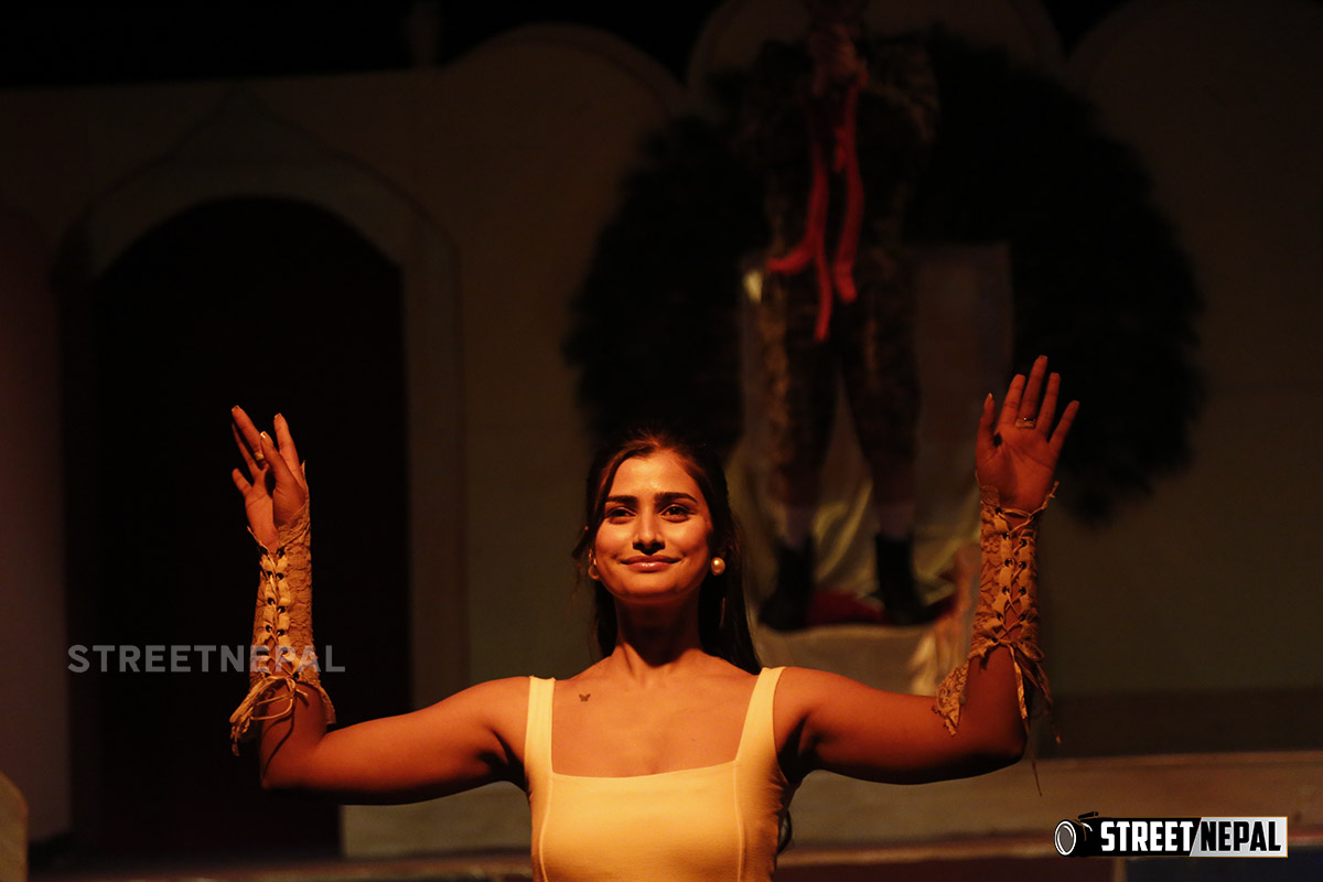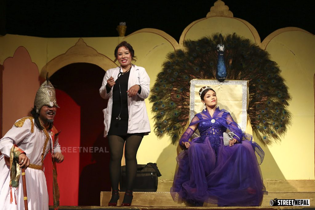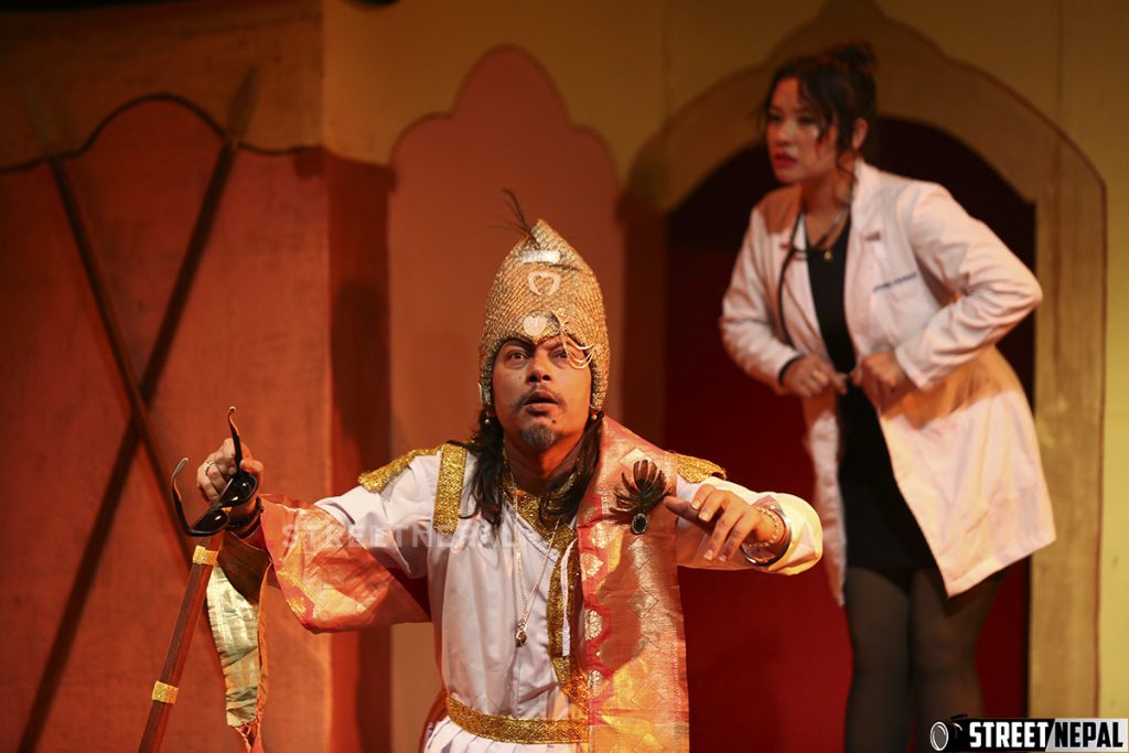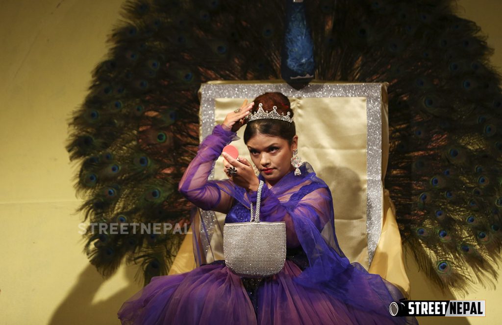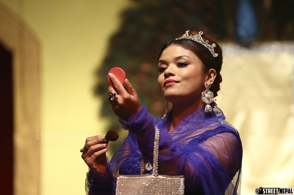 कान्तिपुर फिल्म एकेडेमीको नाटकघर, कान्तिपुर थिएटरमा नाटक ‘महारानीको जात्रा’ मञ्चन भइरहेको छ।