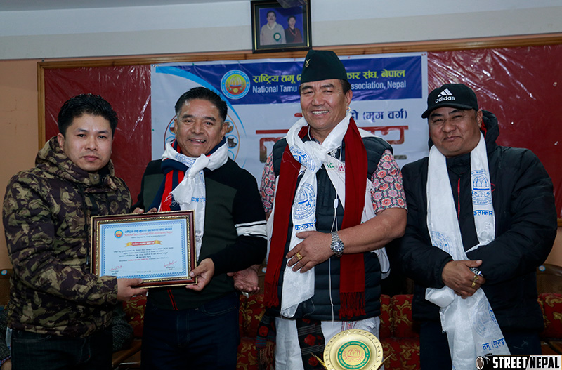 Tamu Artist Association of Nepal exchanged greetings and welcomed “fo lho-mirga barga” yesterday evening. TAAN organized an event at Tamu Hyula Chhonja Dhi-Gurung National Council Gongabu. Donors who help organization were honored at the Lhosar greeting program. Artist who achieved national and international level success were also honored. Various artist’s cultural performances glam up the Lhosar greeting program.