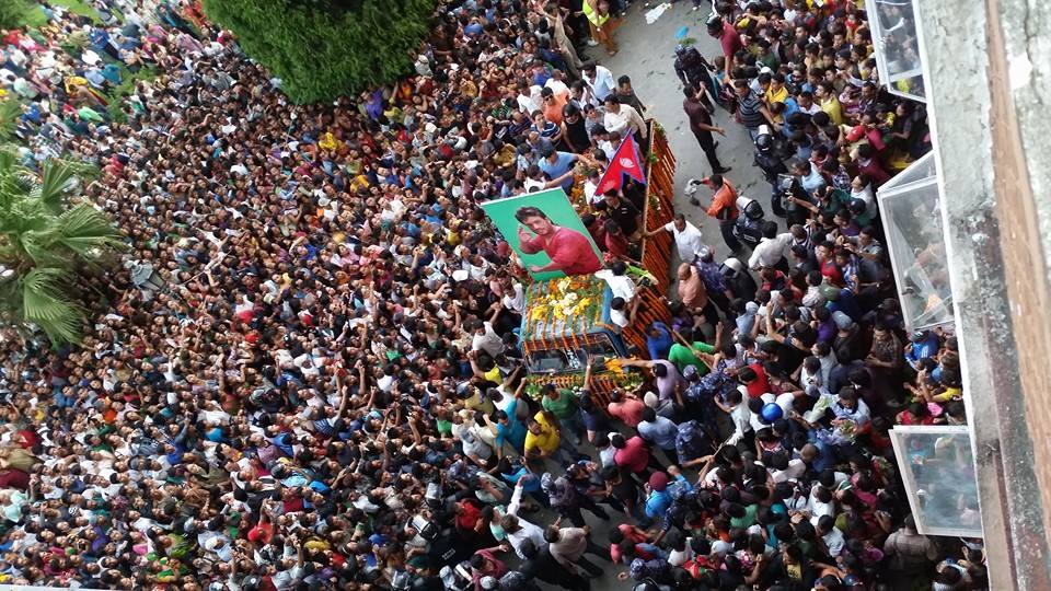 It was scheduled that shrestha’s body will be kept at Nepal Academy Hall up to 3 hours for final tributes but the body could not be kept there because of huge number of his fans and well wishers who came there to pay their last repect to the late actor. So it was taken to the aryaghat .